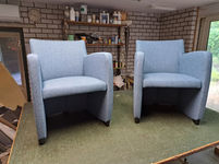 Deze fauteuil kreeg een volledige herbekleding, waardoor comfort en een frisse uitstraling perfect samenkomen.